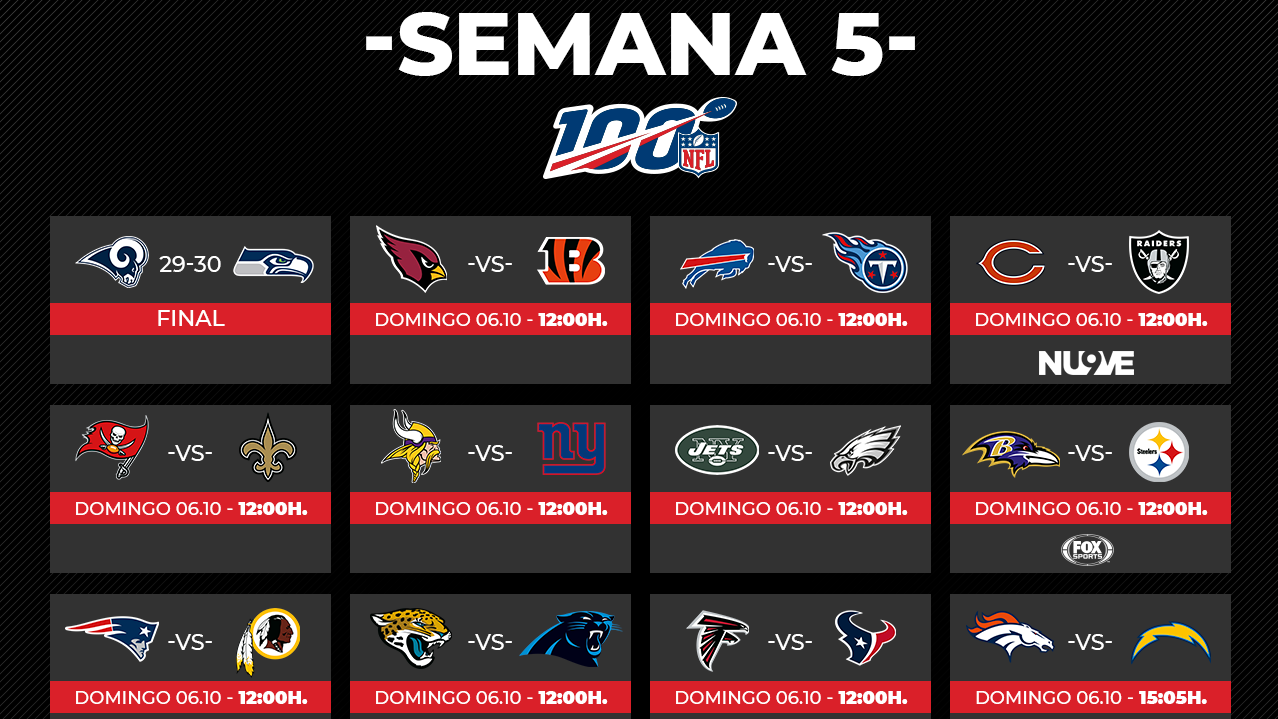 Partidos Y Resultados De La Nfl 2018 Semana 2 As Usa from us.as.com No apuestas de manera aleatoria y deja que nuestros pronósticos te marquen el camino del ganador. Playoffs nfl 2019 el calendario de las finales de conferencia de nfl tendra 4 partidos en londres y otro en mexico en 2019 The 2019 nfl draft kicked off in nashville on thursday night where the arizona cardinals selected heisman winner and oklahoma quarterback kyler murray with the first overall pick. A tan sólo unas horas de que empiecen los juegos que van a definir a los participantes del super bowl liii, ulises harada te deja 10 predicciones para las llegaron las predicciones playoffs nfl 2019 de nuestro staff para la finales de conferencia y cada quien en nuestro staff tiene en mente un super. Fast, updating nfl football game scores and stats as games are in progress are provided by cbssports.com. While the new york jets and the buffalo bills have reasons to expect improvement, there is little to suggest the patriots will not extend their dominance of the division to an 11th straight year this season. El magno evento consiste en seleccionar a los mejores jugadores del futbol americano colegial, que este año han. La temporada regular 2019 de la nfl se disputará a lo largo de 17 semanas con un total de 256 partidos.